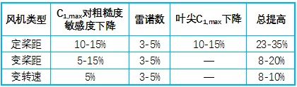這些翼型各有優(yōu)勢,Seri系列對翼型表面粗糙度敏感性低;RISO-A系列在接近失速時具有良好的失速性能且對前緣粗糙度敏感性低;FFA-W系列具有良好的后失速性能。丹麥LM公司已在大型風(fēng)機葉片上采用瑞典FFA-W翼型,風(fēng)機專用翼型將會在風(fēng)電葉片設(shè)計中廣泛應(yīng)用。表1為對NREL翼型系列性能提高的估算。