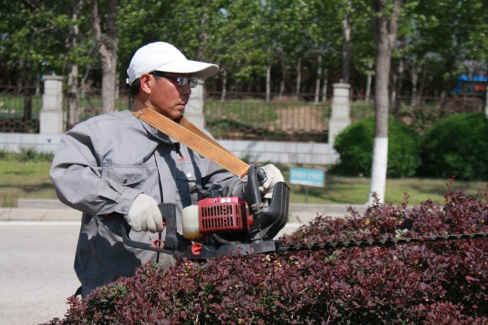 春天對(duì)于王師傅來(lái)說(shuō)是一個(gè)既開心又忙碌的季節(jié),看著自己的勞動(dòng)成果怡然自得,心里有說(shuō)不出的開心,為了能夠讓花木更好的生長(zhǎng),他還要定期給它們打藥、修剪。經(jīng)常能夠看到王師傅用電動(dòng)車拖著工具和移栽的花木在宋跳和大浦兩個(gè)廠區(qū)之間來(lái)回穿梭。王師傅擁有園林高級(jí)管理資格證,作為養(yǎng)護(hù)師,他要確保園區(qū)中的花木成活率,每年的花木死亡要確保在兩棵之內(nèi)。