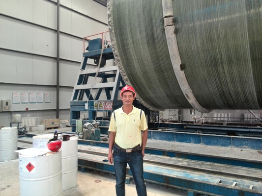 “張斯偉,你們班生產(chǎn)情況如何,有沒(méi)有人員中暑?”“報(bào)告熊經(jīng)理,人員一切正常,保證下班前完成MK-09號(hào)罐體纏繞結(jié)束”纏繞班長(zhǎng)張斯偉用手抹了一把臉上的汗水答道。 “范成雷,現(xiàn)場(chǎng)情況如何,今晚能否完成1號(hào)平臺(tái)的法蘭對(duì)接?”“報(bào)告熊經(jīng)理,人員一切正常,保證今晚保質(zhì)保量的完成任務(wù)”,手糊二班范成磊回答道。像這樣的詢(xún)問(wèn)和關(guān)心還有很多很多,不管是在室溫高達(dá)四十二度的纏繞車(chē)間還是在六十二米高的玻璃鋼煙囪手糊對(duì)接處,你都能看到虎山項(xiàng)目部經(jīng)理熊?chē)?guó)慶的身影。