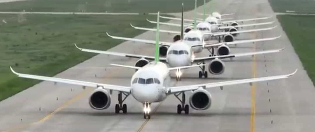 中國商飛公司官網(wǎng)信息顯示,C919大型客機是中國按照國際民航規(guī)章自行研制、具有自主知識產(chǎn)權(quán)的大型噴氣式民用飛機,座級158-168座,航程4075-5555公里。C919大型客機2015年11月完成總裝下線,2017年5月成功首飛,目前累計擁有28家客戶815架訂單。