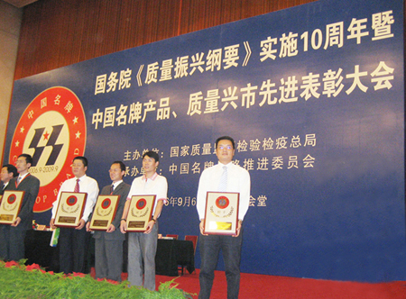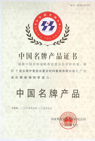 2006年9月6日,由國家質(zhì)量監(jiān)督檢驗檢疫總局主辦,中國名牌推進(jìn)委員會承辦的國務(wù)院《質(zhì)量振興綱要》實施十周年暨中國名牌產(chǎn)品、質(zhì)量興市先進(jìn)表彰大會在北京人民大會堂順利召開。中復(fù)連眾生產(chǎn)的“連眾”牌玻璃鋼管道喜獲“中國名牌”稱號,喬光輝總經(jīng)理上臺領(lǐng)取了獎牌和證書。這是暨2005年獲得江蘇省著名商標(biāo)以來“連眾”牌玻璃鋼管道獲得的又一殊榮。