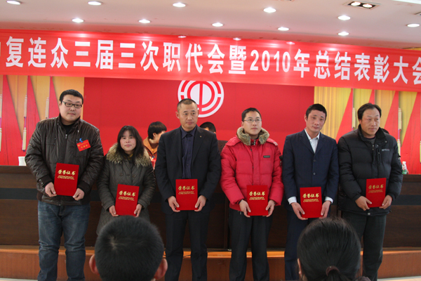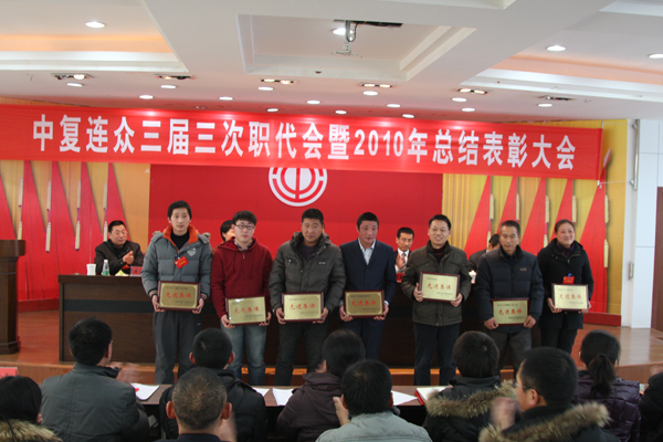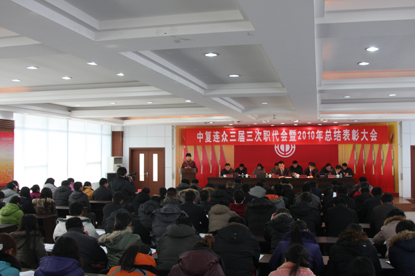 ?;⑥o舊歲,吉兔送福來(lái)。1月26日,中復(fù)連眾迎來(lái)兩件喜事,第三屆三次職工代表大會(huì)和2010年度總結(jié)表彰大會(huì)同時(shí)召開。來(lái)自各條戰(zhàn)線的職工代表、行管人員和受表彰人員歡聚一堂,回顧總結(jié)企業(yè)一年來(lái)的工作成績(jī),振奮精神,堅(jiān)定信念,喜迎2011。