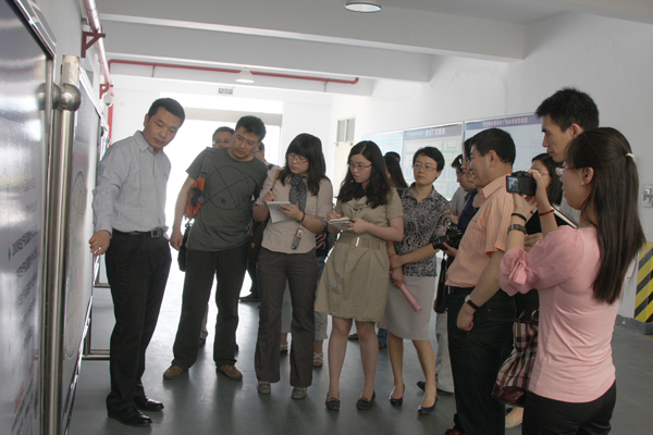 5月21日,在中國建筑材料集團(tuán)有限公司副總經(jīng)理馬建國的陪同下,人民日報、新華社、光明日報、中央人民廣播電臺、科技日報、中新社等12家媒體的近20名記者走進(jìn)中復(fù)連眾,參觀葉片生產(chǎn)車間和堆場。隨后中宣部“轉(zhuǎn)變經(jīng)濟(jì)發(fā)展方式”媒體座談會在云臺賓館召開,會議由馬建國副總經(jīng)理主持。