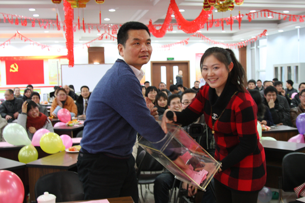 聯(lián)歡會還特別安排現(xiàn)場抽獎活動,共抽取了2個特等獎、5個一等獎、10個二等獎和20個三等獎。獲獎觀眾五人一組參與了60秒不NG、心有靈犀、瘋狂大搜索三項互動活動,“笑”果不斷。在帶給大家好運的同時,高管還紛紛登臺獻藝,與職工同樂。喬光輝總經(jīng)理和行政部吳霏霏帶來《北國之春》;王彤兵副總經(jīng)理獨唱《月亮代表我的心》;耿婷芳副總經(jīng)理、行政部朱維新對唱《祈禱》,一首首經(jīng)典老歌,一聲聲祝福,將晚會推向高潮。
