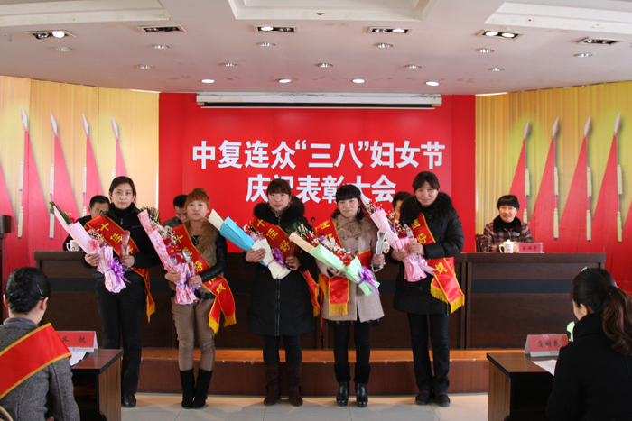 3月7日下午,五樓會議室里鮮花簇擁、春意融融,中復(fù)連眾隆重舉行“三八節(jié)”慶祝表彰大會,授予二十位女職工“十佳好兒媳”、“十佳賢內(nèi)助”稱號。