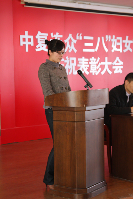 任桂芳董事長向大家表示節(jié)日的問候,并發(fā)表了熱情洋溢的講話。她表示,多年來廣大女職工圍繞企業(yè)中心工作,自強不息、勇于創(chuàng)新,在平凡的崗位上做出了不平凡的業(yè)績,贏得了無數(shù)榮譽。近5年來,近40人次受到市級以上和上級集團公司表彰。在生活中,吃苦耐勞、甘于奉獻,展示了優(yōu)良的品質(zhì),撐起了家庭的“半邊天”。“十佳好兒媳、十佳賢內(nèi)助”評選非常有意義,是繼承和發(fā)揚中國婦女傳統(tǒng)美德的好舉措,也是建設(shè)和諧企業(yè)的具體體現(xiàn),要繼續(xù)辦下去。任董要求廣大女職工要立足本職,用女性特有的細心、勤勞和智慧,與企業(yè)共同成長;要努力學(xué)習(xí)理論知識,提升技能水平,加強社會公德、職業(yè)道德、家庭美德和個人品德建設(shè);要常懷感恩之心,感恩我們的父母,感恩社會,發(fā)揚“自尊、自愛、自立、自強”的巾幗精神,實現(xiàn)人生價值。