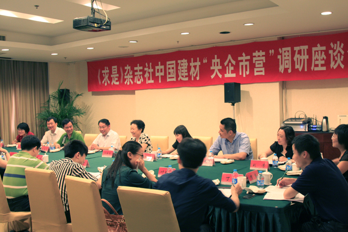 參觀結(jié)束后,調(diào)研組與中國復(fù)材副總經(jīng)理、中復(fù)連眾董事長任桂芳、中復(fù)神鷹董事長張國良進(jìn)行交流座談,了解企業(yè)發(fā)展現(xiàn)狀及加入中國建材后的變化。清華大學(xué)教授朱安東、中國社科院副研究員王佳菲、連云港市委宣傳部常務(wù)副部長邸占山出席了座談會(huì)。