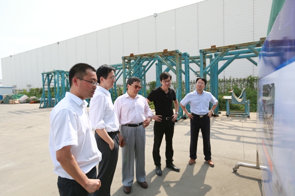 在連云港葉片工廠,蔡洪平主席一行饒有興致地參觀了12兆瓦試驗臺、19號生產線和葉片堆場。作為國內風機葉片制造領軍企業(yè),中復連眾在國內擁有7個葉片生產基地,可以生產9個系列60多個葉型,年產能超過一萬只。在參觀過程中,蔡洪平主席詳細了解了風機葉片的試驗參數,風機葉片結構設計和工藝流程,以及原材料采購等事宜,對中復連眾的發(fā)展速度和規(guī)模表示贊賞。