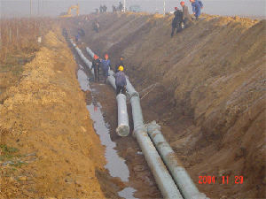 山東海陽核電廠施工用水管道一期工程總長8公里,為2條DN350的玻璃鋼管道平行鋪設(shè),整個工程共使用了中復(fù)連眾的玻璃鋼管道約16000米,管道壓力等級為1.0Mpa,產(chǎn)品執(zhí)行JC552-94標(biāo)準(zhǔn), 此項目由中復(fù)連眾自行安裝,在已經(jīng)進(jìn)行過的三個水壓試驗段的水壓試驗均一次性打壓通過,受到了山東核電有限公司和核工業(yè)四達(dá)建設(shè)監(jiān)理公司的高度評價.