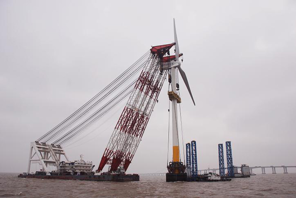 2010年2月27日15時28分,隨著最后一臺風機與海上基礎(chǔ)承臺對接,我國首座、也是亞洲首座大型海上風電場一一東海大橋海上風電場全部34臺風機安裝取得圓滿成功。這標志看我國海上風力發(fā)電產(chǎn)業(yè)穩(wěn)穩(wěn)邁出了第一步并進入了實戰(zhàn)階段。